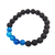 Il bracciale unisex è composto da sfere nere di pietra lavica, ornate da perle naturali decorative di Agata Blu. Grazie alla caratteristica porosità le pietre laviche potranno assorbire alcune gocce del vostro olio essenziale preferito, permettendovi di portare sempre al polso l’aroma selezionato.
