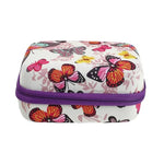 Borsa porta oli in struttura rigida con graziose farfalle stampate (vedi foto), dotata di maniglia e chiusura zip di colore VIOLA.