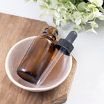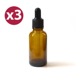 Bottiglia in vetro ambrato da 30ml con pratico contagocce per un perfetto dosaggio dei tuoi oli e delle tue miscele.