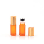 Pratico roll-on in vetro spessorato satinato di colore ARANCIO, con sfera in acciaio inossidabile di alta qualità. Il tappo di metallo è in colore coordinato elegantemente zigrinato (vedi foto).