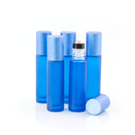 Pratico roll-on in vetro spessorato satinato di colore BLU, con sfera in acciaio inossidabile di alta qualità. Il tappo di metallo è in colore coordinato elegantemente zigrinato (vedi foto).