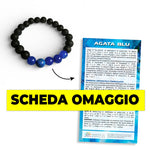 Materiali: Perle naturali di Agata Blu (8mm) e Pietra Lavica porosa su elastico rinforzato.