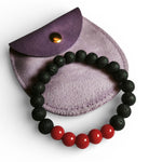 • Materiali: Perle naturali di Agata Rossa (8mm) e Pietra Lavica porosa su elastico rinforzato.