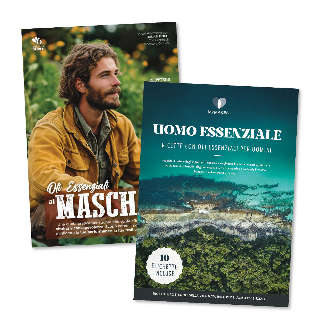 Scopri il potere degli oli essenziali per migliorare la tua routine quotidiana, le performance fisiche e l'equilibrio interiore. Questo set esclusivo unisce la conoscenza pratica di una guida specialistica con il supporto di un ricettario pronto all'uso, pensato per ogni esigenza dell'uomo moderno.