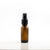 Questo flacone di vetro ambrato da 15 ml è dotato di un nebulizzatore a pompa nera e di un tappo di plastica trasparente per la protezione.