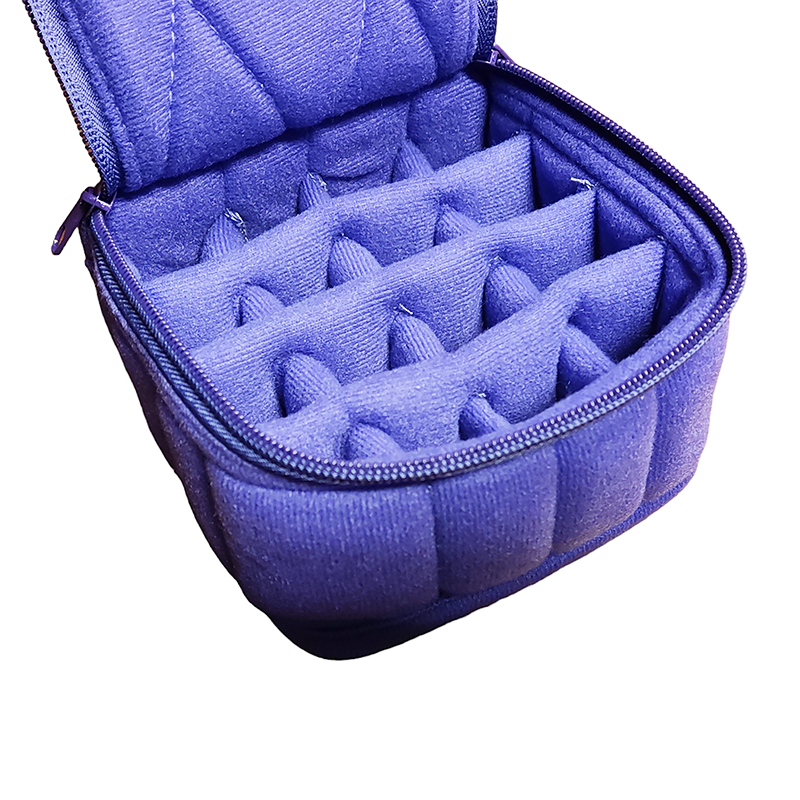 Una soluzione leggera, comoda, lavabile, pratica e particolarmente sicura per il trasporto delle tue preziose bottiglie di oli essenziali. Grazie alla griglia interna il beauty è in grado di alloggiare 16 bottiglie da 15ml, che potrai portare sempre con te, senza temere che vengano danneggiate nel trasporto.
