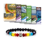 Disponibile anche con il bracciale dei 7 chakra "Amaya", un bracciale di alta qualità decorato con perle di giada rossa, agata arancione, giada gialla, crisoprasio, giada blu, lapislazzuli e ametista insieme a perle di lava, entrambe con la capacità di supportare e migliorare il tuo benessere.