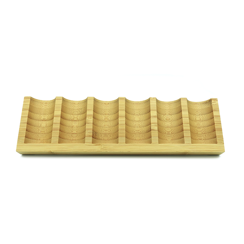 Espositore orizzontale in pregiato legno di bamboo. L'espositore è la soluzione ideale per disporre in bella vista 6 bottiglie da 5ml o 15ml. Grazie a questo espositore, disponi le bottiglie per un rapido accesso gli oli di tua preferenza.